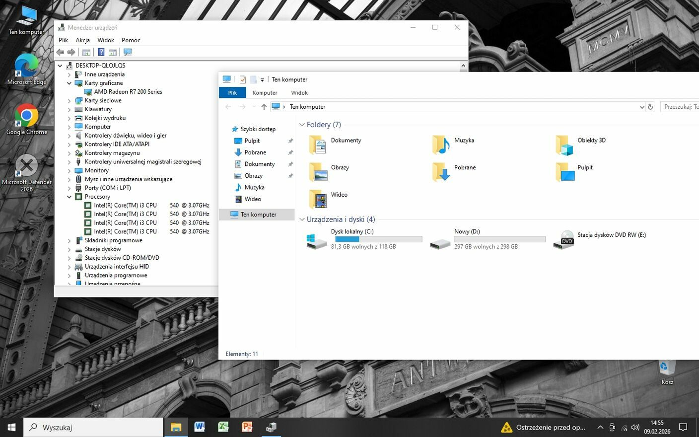 - zainstalowany Office (Word, Excel, Prezentacje)