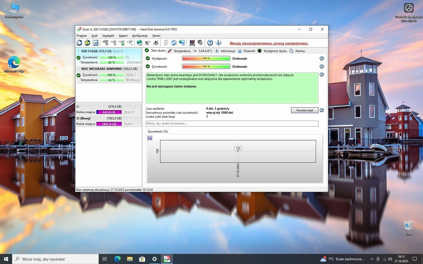 Dysk SSD jest nowy, ma przepracowane 3 godziny (czas na postawienie świeżego systemu i aktualizacje).