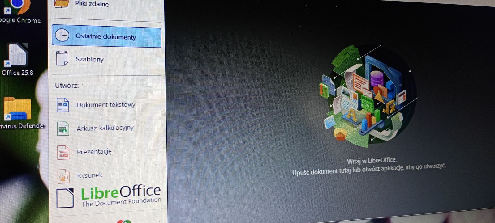 Zainstalowany na czysto system Windows 11, pakiet Office, program do obsługi plików .pdf i faktur, program do rozpakowywania plików. Jest antywirus.